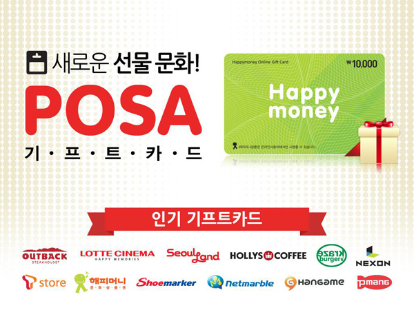 해피머니아이엔씨 관계자는 “POSA 기프트카드는 편의점 주 고객인 학생과 직장인들이 선물이 필요할 때 간편하게 구입할 수 있는 실용적인 선물이다”며 “앞으로 기프트카드가 새로운 선물 문화로 자리잡게 될 것으로 기대한다”고 말했다.